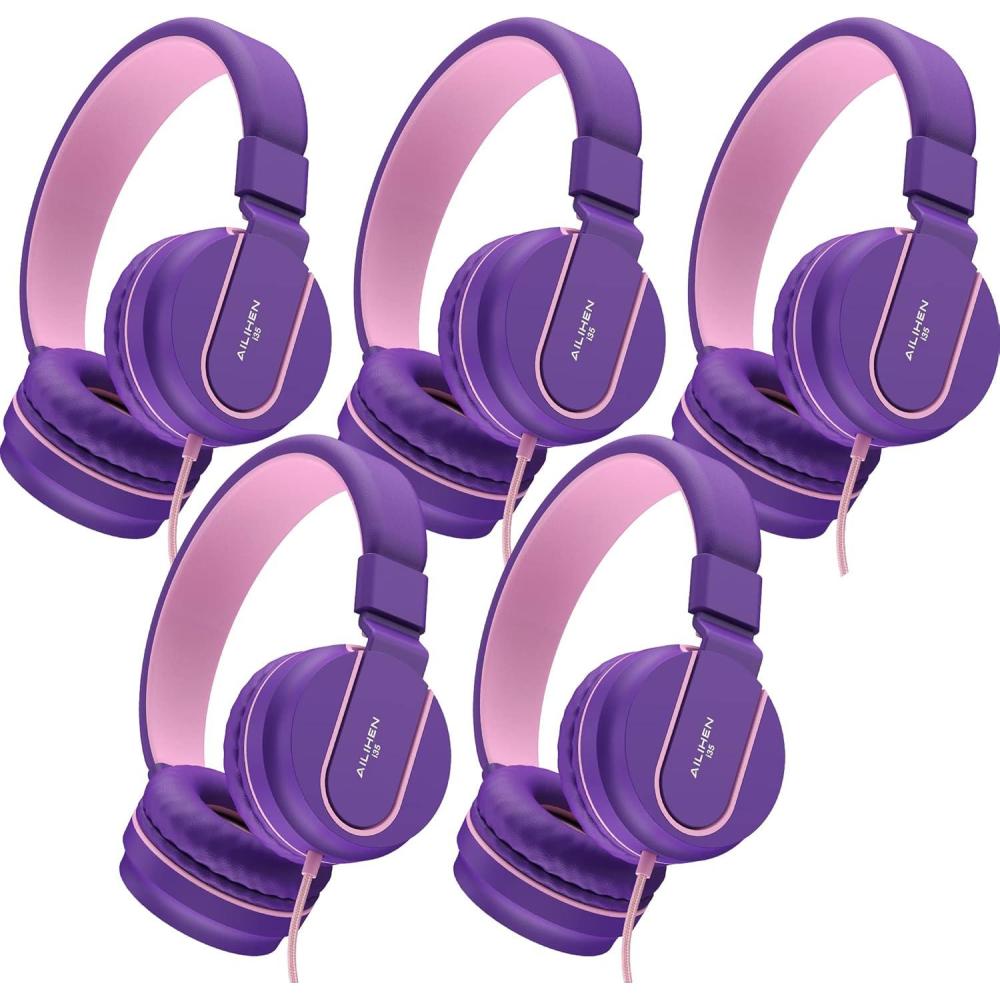AILIHEN Kids Headphones Bulk 10-Pack for K-12 School Classroom, On-Ear Wired Headset with Microphone for Students Children with 93dB Volume Limited, 3.5mm Jack for Chromebooks Tablets Laptop Computer(Purple)